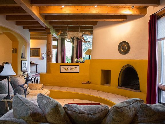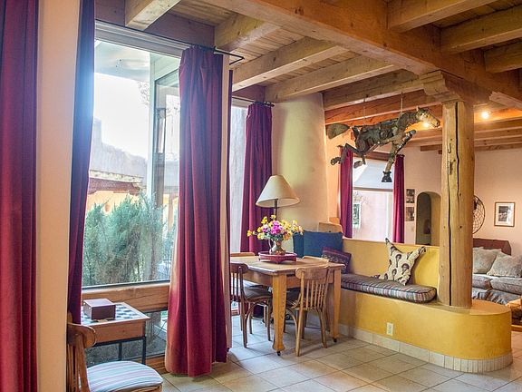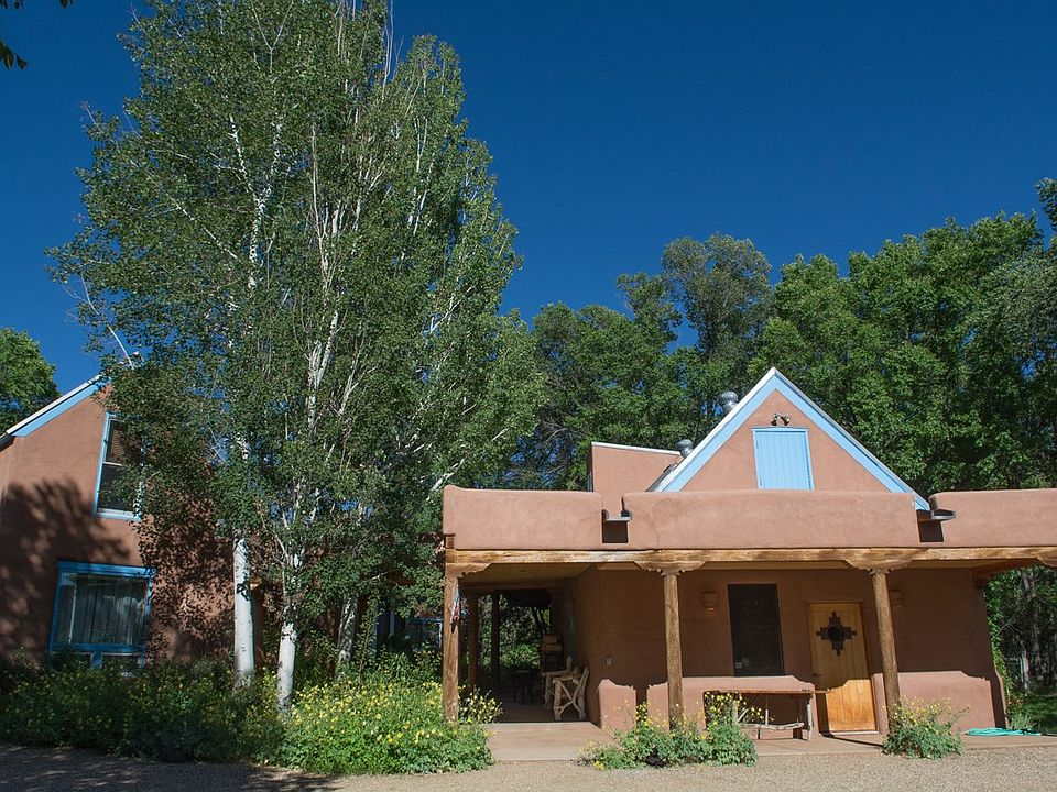 Beautifully Maintained Original Adobe Home. This tranquil and serene property has 2 separate homes set back off of desirable Upper Ranchitos Road for extra privacy. Conveniently located only minutes from Historic Taos Plaza! Enjoy gorgeous lush gardens full of flowers with soothing sounds of the Rio Pueblo and the aspen trees swaying through the cool breeze from the back patio where there is access from the kitchen and master bedroom. Perfect spot for dining al fresco. The main house has 3,100 square foot with 3 bedrooms, 2 and half bathrooms, an office, upstairs studio space, several open living/entertaining spaces featuring a banco seating area, and an attached carport. The main house offers a combination of Old World charm and modern comforts. Originally built in the late 1800s and remodeled in the early 2000's. The second house is connected by a portal and with large guesthouse/studio space ideal for an artist or use as a large living space or quest quarters for family and friends with a bedroom and extra studio/storage room and bathroom. Both homes boast viga and beam ceilings, 4 kiva fireplaces in total, wood and tile floors, large windows, and skylights throughout. Outside deck area has a large hot tub perfect for quiet relaxation while soaking away the world's stressors. Additional 2 carports with attached storage space. This property is so versatile! It could be used as a family retreat, optimal live/work from home scenario. The possibilities are endless!