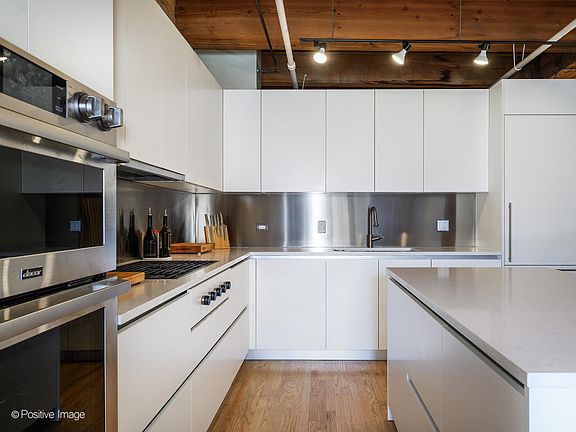 Live the Loft Life in the heart of River North in this fully updated 2 bed, 2 bath home at Erie Center Lofts. This stunning residence blends classic industrial character with modern luxury. Featuring newly renovated kitchen and primary bathroom, exposed brick, soaring timber ceilings, and hardwood floors throughout. The brand-new chef's kitchen was completely reimagined with sleek white cabinetry, quartz countertops, high-end appliances, and a spacious island - perfect for entertaining or casual dining. The open-concept living and dining area offers an abundance of natural light, a cozy gas fireplace, and direct access to your private balcony for relaxing or grilling. The primary suite is a serene retreat, featuring a large walk-in closet with custom organizers and a fully renovated spa-like bath with double vanity, designer tile, and a glass-enclosed shower. The second bedroom offers flexibility for a guest room, home office, or gym. Garage parking available for $200/month. Building amenities include 24-hour door staff, fitness center, roof deck, and additional storage. Enjoy all that River North has to offer - just steps to Starbucks, Ward Park, the riverwalk, top restaurants, shops, and transportation.