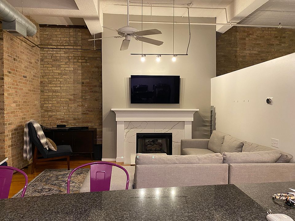 Available October 25th! $2650 for unit or $2800 with heated garage parking space. Includes Comcast Xfinity cable & internet! More pictures to come. Resident pays electric & gas directly to utility provider. Offering 18 month lease for 1st term and 12 month or 24 month terms at renewal (if eligible). Building has a move in fee paid directly to HOA. Pet friendly - all pet fees are paid to HOA. Property features exposed brick walls in living & bedroom, fireplace, sunken tub, 24 hour doorstaff and package receiving. Fob entry building access & app controlled call box. Non-smoking building. Big bedroom closet with custom shelving, utility room and lots of kitchen storage. Hardwood floors in living/kitchen, brand new carpet in bedroom. Walking distance to restaurants, riverfront, Michigan Ave, the Loop.