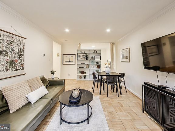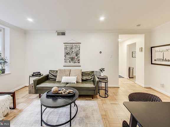 This is one of the most unique layouts in McLean Gardens - it's a must see! This is a two level unit current set up with a flex second bedroom/den and a separate office space - check out the floor plan! From the courtyard, you'll find two separate access points to this two story unit - one up a half flight of stairs to the living room level and one down a half flight of stairs to the primary bedroom level. Starting upstairs, this condo has a large sunlit kitchen with stainless steel appliances, white cabinets, and black granite countertops. A huge pantry space just off the kitchen adds tons of storage. Further in, you have a large living room/dining room space with newly refinished parquet floors, recessed lighting, and a sunlit view overlooking the Glover Archibald Park. Still on the main level, you have a spiral staircase to access the lower level primary suite, and then another flex space - perfect for a small office, with two additional closets, a full size washer/dryer and a large half bath. Downstairs, you have three entry points to the large primary bedroom suite - the internal spiral staircase, the building internal staircase to a separate, exterior door, and an external staircase on the parking lot/park side for easy entry from the parking area. The large bedroom area has new energy efficient LED lighting, 3 large closets in a dressing room area, and a large en suite bathroom. This unit is located just 3 blocks from City Ridge with access to DC's first Wegmans, Tatte coffee shop & Bakery, Equinox, Taco Bamba, Rooftop Kitchen, King Street Oyster House & More. Less than a mile from the Tenleytown Metro Stop, and just over a mile to the Van Ness stop, McLean Gardens are also located one block from the D82 bus that goes all the way through the city to Foggy Bottom metro. McLean Gardens is a pet friendly building.