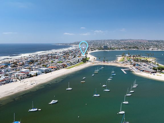 This is a mid-term furnished rental available with a 30 day minimum. Updated 2 bedroom, 2 bath townhome with 180 degree views of Sail Bay available directly on the beach. Property is steps to sand and located directly across from the San Diego Aquatic Center and a short walk to the world renowned Catamaran Resort Hotel and Spa. Come and live the true coastal San Diego dream on the beach while also collecting short term rental income while you are out of town. Enjoy Seaworld fireworks and sit down water views of the bay from your main living area, primary bedroom and private balcony. Kitchen was recently remodeled and expanded to include large island and new appliance package. Each bathroom was tastefully remodeled with a modern flair. Owner recently installed new flooring, custom California closets in primary bedroom and an electric fireplace in the main living area. Message today for availability or to arrange a tour. Available for furnished mid term rental starting 11/10/25.