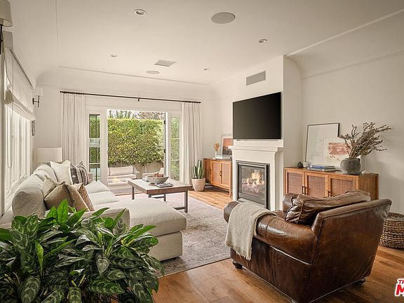 Discreetly tucked behind tall privacy hedging, this exquisite 1920s Spanish-style residence was completely renovated in 2020 -- blending timeless architectural character with thoughtful modern updates in the heart of Mar Vista. The home's classic charm is evident throughout, featuring coved ceilings, terracotta tile, warm wood floors, and a traditional barrel tile roof. Large windows fill the interior with natural light, while sculptural lighting and elegant sconces create a refined and welcoming atmosphere. The spacious living room, anchored by a gas fireplace and wired for surround sound, provides a comfortable setting for both relaxing and entertaining, with French doors that open directly to the backyard for effortless indoor-outdoor living. In the kitchen, every detail has been curated for both beauty and function. A seated, natural stone-topped island takes center stage, while premium Thermador appliances and abundant pantry storage make cooking an absolute pleasure. Adjacent to the kitchen, a sunlit dining area with a built-in banquette creates an inviting space for gatherings. Down the hall are two well-appointed bedrooms, including a serene primary with dual closets and another set of French doors that open to the backyard. The primary bathroom is clad in custom marble tile and features a dual sink vanity and a glass-enclosed shower. Outside, a private backyard oasis awaits, complete with an expansive patio for al fresco dining and entertaining, a firepit for evening relaxation, stately olive trees, and a lush lawn. The fully permitted detached suite with a full bathroom provides versatile options for a guest bedroom, home office, or studio. Integrated home tech offers peace of mind and optimal connectivity with pre-wired fiber internet, cable, and hardwired security cameras on the property's exterior. Additional highlights include a formal entryway with built-in storage, a stylish powder room, a stacked laundry area, and two driveway parking spaces. Ideally located in a sought-after Mar Vista neighborhood, this home offers convenient access to local shopping, dining, and amenities along Venice Boulevard, and is less than ten minutes from Abbot Kinney and the beach. A rare blend of classic charm, modern luxury, and exceptional privacy, this Spanish gem exemplifies the best of Westside living.