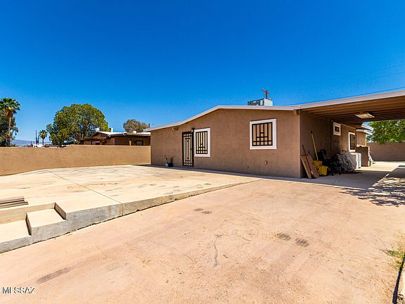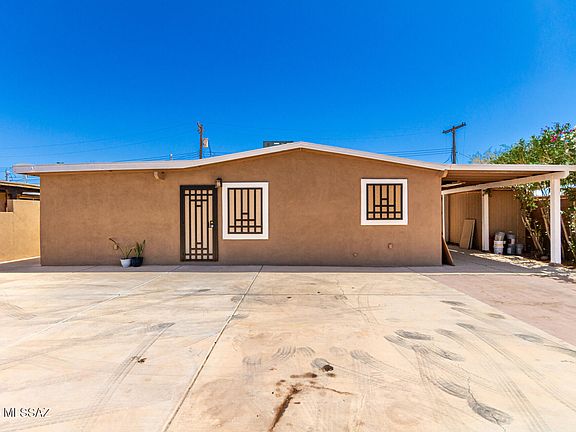 Welcome to this beautifully updated 3-bedroom, 2-bathroom home, perfectly situated in the heart of Tucson! This property offers both comfort and convenience, featuring a fully enclosed and cemented yard, providing privacy and low-maintenance outdoor space. Inside, you'll find gorgeous tile flooring throughout and granite countertops, adding elegance and durability to your living spaces. Recent updates include newer exterior and interior paint, modern fixtures, a freshly coated roof, and a newer AC and water heater, ensuring a move-in-ready experience. Plus, a reverse osmosis water system adds to the home's convenience and efficiency. Plenty of parking space with a carport and two storage sheds, ideal for extra storage or workspace.