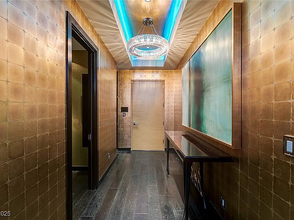 Luxurious Waldorf Astoria Custom built Penthouse. Exquisite Top of the Line Finishes and Interior Design with Furnishings by Celebrity Designer Christopher Guy. One of a kind Gourmet Kitchen w/Custom Quartzite Counter Tops & Illuminated Onyx Island, 250 Bottle Wine Fridge, Zebra Wood Artisan Ebony Cabinetry, Bali Bali Hardware, Grohe Fixtures, Wolf Appliances and so much more! A must See! Residents enjoy world-class amenities: on-site concierge, gourmet dining, private valet, yoga studio, fitness center, boardroom, resort pool, and a renowned spa. Just steps from elite shopping, fine dining, acclaimed art galleries, live entertainment, and the T-Mobile Arena, this is a rare opportunity to own a meticulously curated residence in the heart of the legendary Las Vegas Strip.