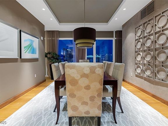 Everything about this immaculate Waldorf Astoria residence exudes elegance and class. Professionally designed and furnished, it is clear that no expense was speared creating this luxurious masterpiece. Featuring one of the largest floor plans available, there is plenty of living space providing for a large family room, formal dining room, grand kitchen with stainless steel appliances, center island and a generous amount of modern cabinetry plus separated dual primary suites, each with spa like bathrooms. The views are just as incredible looking towards the north at the beautiful and famous Las Vegas Strip. The Waldorf Astoria offers the best experience in Las Vegas for high-rise living complete with services and amenities including concierge, valet, gym, spa, salon, restaurants and so much more. Hardly occupied, this residence shows like new and will convey fully furnished, ready for immediate move in. Start living the life of luxury today!