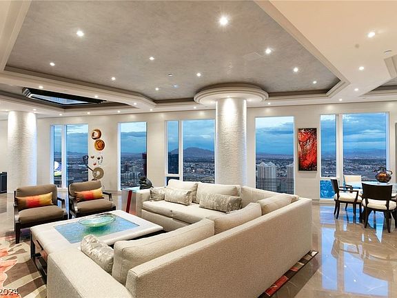 Elevate your lifestyle to unparalleled heights with this exquisite corner 46th floor penthouse, nestled within the prestigious Waldorf Astoria Las Vegas. Meticulously curated, this residence boasts a custom grey shell build-out that is truly one of a kind. Every detail has been carefully crafted to perfection, reflecting the epitome of timeless elegance and refined taste. No expense has been spared in the creation of this architectural marvel. From imported marble flooring to bespoke fixtures and fittings, every element exudes unparalleled craftsmanship and luxury that you won't find anywhere else. Perched atop one of the world's most iconic landmarks, this exclusive penthouse offers breathtaking panoramic views of the dazzling Las Vegas skyline including the new MSG Sphere, vibrant desert sunsets and front row seats to the thrilling F1 race. If you are looking for the best, this is it. You do not want to miss this one!