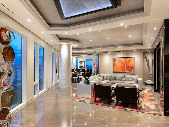 Elevate your lifestyle to unparalleled heights with this exquisite corner 46th floor penthouse, nestled within the prestigious Waldorf Astoria Las Vegas. Meticulously curated, this residence boasts a custom grey shell build-out that is truly one of a kind. Every detail has been carefully crafted to perfection, reflecting the epitome of timeless elegance and refined taste. No expense has been spared in the creation of this architectural marvel. From imported marble flooring to bespoke fixtures and fittings, every element exudes unparalleled craftsmanship and luxury that you won’t find anywhere else. Perched atop one of the world's most iconic landmarks, this exclusive penthouse offers breathtaking panoramic views of the dazzling Las Vegas skyline including the new MSG Sphere, vibrant desert sunsets and front row seats to the thrilling F1 race. If you are looking for the best, this is it. You do not want to miss this one!