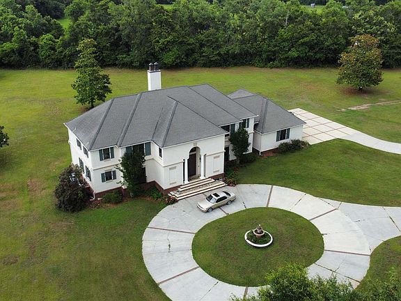 Gorgeous CUSTOM BUILT Tuscan Style home perfectly situated on 23.04 ac of privacy! This stunning home sits back 1/2 mile off the Hwy, in a VERY PRIVATE setting with nothing but nature & wildlife surrounding you! The gated and paved 1/2 mile driveway leads you to the circular driveway showcasing a magnificent water fountain! As you approach the home you will notice wrought iron finishes, columns & the GORGEOUS custom MAHOGANY double entry door. Enter this stunning home to a two-story ceiling in the great room, crown molding throughout, 3/4" SOLID HICKORY HARDWOOD flooring, stained interior wood doors & Kolbe custom windows & French doors! The great room features a gas fireplace flanked by tall French doors with elliptical windows, columns at the foyer entry & a staircase & ELEVATOR to the 2nd floor. The 4 person elevator boasts MAHAGONY walls, tile flooring & a telephone. The huge kitchen offers some of the finest appointments such as 2 SUB ZERO refrigerators, BOSCH oven, Thermador cooktop, 2 dishwashers, warming drawer, Marble countertops, Hickory hardwood flooring, 4 sets of French doors & exposed beams. The BUTLER'S kitchen & pantry are equally beautiful with Granite tops, cabinets with glass doors, elegant chandelier, tile flooring, soft close drawers & roll-out shelves. The THEATER/MEDIA ROOM includes a brand new high end 100 inch tv and was constructed to be a SAFE ROOM for emergency storm protection. On the 1st floor you have 2 bedrooms with each having their own private bath with custom finishes & walk-in closets. The 2nd story catwalk extends to 3 sides of the home, with a Juliette balcony overlooking the foyer. The cat walk may be accessed by the elevator or stairs & directs you to the 2 additional upstairs bedrooms w/ensuite bathrooms, custom finishes & walk-in closets. The master bedroom wing/retreat provides you total privacy! The master bedroom showcases a trey ceiling w/rope lighting, french doors opening to large private balcony, cont'd