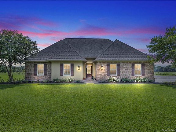 Experience the best of country living on the outskirts of Jennings with this immaculate 11-year-old home, perfectly situated on a beautiful one-acre lot. This 3 bedroom, 2 bathroom residence boasts an open and split floor plan, enhancing privacy and flow. Real wood floors, plantation shutters, and fresh paint throughout the house create a warm and inviting atmosphere. The spacious great room features a cozy wood-burning fireplace and opens up to a large dining area and kitchen, making it ideal for hosting and everyday living. The kitchen is a chef's delight with custom stained cabinets with granite counter tops, a walk-in pantry, an eat-in island bar, double ovens, stainless steel appliances, and a gas stove. Retreat to the master suite, complete with a large bathroom featuring a huge walk-in shower, a walk-in closet, a dressing vanity area & double sinks. Outside, the property is beautifully landscaped and includes a 20 x 30 metal shop on a slab with a large covered awning on two sides and a half bath, adding practicality and value. A 24k Generac generator ensures continuous power during outages. Enjoy the outdoors with a covered patio, perfect for entertaining. Situated in flood zone X, this home does not require flood insurance, providing peace of mind and savings. The seller is also open to negotiating on furniture and lawn equipment. Don't miss out on this perfect blend of comfort and convenience. Contact us today to schedule your showing and take the first step towards making this your new dream home.