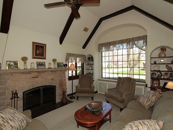 Classic brick Tudor in Saveland Park neighborhood features beautiful architectural design: leaded glass windows, 2-story beamed ceiling in Great Room, NFP, arched doorways, staircase landing overlooking Great Rm, built-in bookcases, Spanish plaster & so much more! KTN has breakfast nook for dining, Corian countertops & under-mount sink. You'll appreciate the gleaming (refinished) HWF's in the Dining Room & Upper Bedroom, the walk-up attic for storage & the finished den/office in the lower level. Recent updates: tear-off roof (2015), newer boiler (2012) Range (1 year) & Refrigerator (4 years)