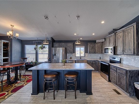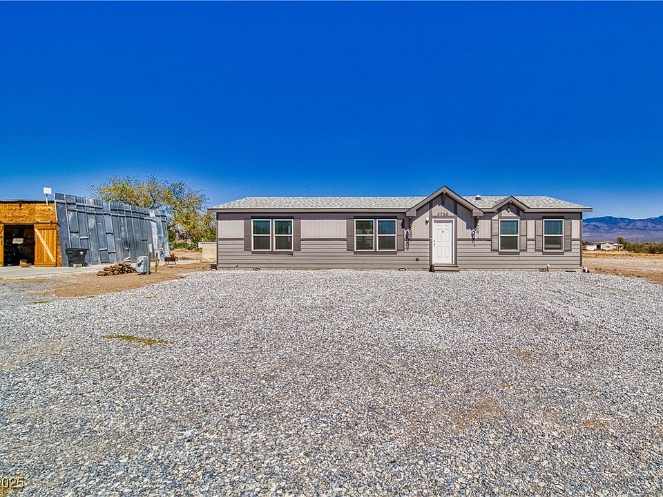 Welcome to 3750 W Blosser Ranch Road in Pahrump, NV—set on 5.3 acres with endless potential. This newer 3-bedroom, 2-bath manufactured home features an open-concept design with a spacious living area, office nook, and modern kitchen complete with stainless steel appliances, a center island with storage drawers, and plenty of counter space. The property offers a versatile shop/garage for projects or storage, while a mature fruit tree brings charm to the wide-open landscape. With stunning mountain views as your backdrop, this blank canvas invites you to create the lifestyle you’ve been dreaming of—whether expanding, gardening, or enjoying the peaceful desert retreat. Important to note this property is on it's own private well.