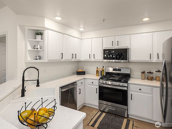 Simplify life without sacrificing style. This updated ground-floor end unit in Oxford Park offers true effortless living with no stairs, no stress, just modern comfort. New paint, flooring, lighting, countertops and appliances. A flexible den with double doors provides the ideal home office or guest space. Step outside to your private patio overlooking a lush, HOA-maintained greenspace giving your own backyard without the upkeep. Attached two-car garage, plus a recently renewed community with new siding, roof, and windows. Enjoy Klahanie’s resort-style amenities: pools, pickle ball, tennis courts, trails, grocery and dining options. Wall to Challenger Elementary & Beaver Lake Middle School. Great HOA with no rental cap.