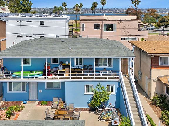 Four attractive Crown Point units on a quiet street, a short stroll to Mission Bay! Front house + 3 rear units. Investor's dream, or live in one and rent the rest! Large courtyard leaves room to expand the cute front house. Rents are 20% under market, currently $9,020/mo (or $108,240/yr). Fully remodeled 1-BR unit (no photos available), dual-pane windows on the house, + misc updates throughout, but could use more. One-car garage plus five additional spaces ensures ample parking. This beachy Crown Point location and property type (fourplex) are in high demand—don't miss this incredible investment opportunity!