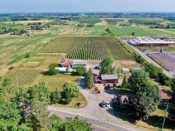 Established Winery Operation (Business and Branding Not For Sale) spanning 9.18 acres together with land, buildings, and all operational assets. Located in the iconic Niagara Escarpment celebrated for its unique micro-climate. The property features a well-established vineyard with mature Merlot, Chardonnay, and Cabernet Franc plantings. Known for producing award-winning wines, offering buyers a proven foundation for future growth. Survey/ Site Layout attached. Bottling capacity, equipment lists, maintenance contracts, and other pertinent operational information will be provided upon execution of a Confidentiality Agreement. All licenses andcertifications are current. The property accommodates events of approximately 200-250 guests. The 3,828SF building interior features a reception area, tasting room, retail lounge, washrooms, kitchen, production area, temperature-controlled cold room, barrel cellar, and storage/ utility rooms. The second floor includes offices with staff washroom and a laboratory/testing room, with potential for residential use. See Interior floor layout plan. The property offers a stone patio and lounge with marquee tent, extensive landscaping, a lean-to covered crush pad, barrel cellar access, picnic bench area, and ample parking. A grade-level drive-in door allows for efficient shipping and handling. Multiple walk-outs and internal access points seamlessly connect interior and exterior spaces. Recent building addition was completed circa 2013. Situated in a highly sought-after location along the Niagara-on-the-Lake wine route, the property is surrounded by established anchor businesses such as The Watering Can and Bench Brewery. Ideally positioned just minutes from the QEW, with King Street (Hwy 81) running directly through Beamsville and the scenic landscapes of Vineland before continuing toward Cambridge/Niagara, this property offers exceptional visibility and accessibility. Click on Virtual Tour links for listing assets.