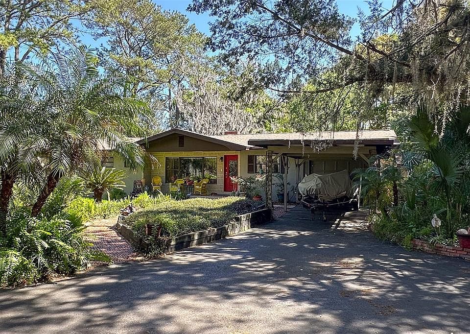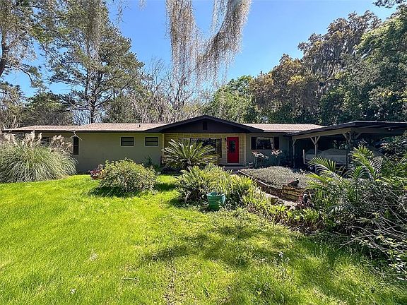 SELLERS ARE OFFERING $5,000 TOWARDS AN INTERST RATE BUY DOWN! NEED A HUGE WORKSHOP OR STORAGE?? Here it is!! LOCATION LOCATION LOCATION!! This property truly offers a rare opportunity to create your own oasis in one of Ocala's most desirable areas. This home is so charming boasting 2 bedrooms and 2 baths, it features a cozy living room and a family room with a wood-burning fireplace, perfect for gatherings and lazy evenings by the fire. When you step outside you will find a Tranquil Outdoor Retreat while on the back porch, immerse yourself in the calmness of the lush landscaping, creating a serene backdrop for outdoor living and entertaining. The expansive property is Situated on 1.8 acres of beautifully landscaped grounds that is completely fenced in and offers ample space for outdoor enjoyment and relaxation. The climate-controlled Workshop (1012 sft) is Ideal for the creative individual, and is connected to a spacious 1688 sft. storage barn, providing endless possibilities for hobbies and projects. There are 2 carports that house 3 vehicles, then out back there is also a portable for extra storage with an additional carport. Don't miss out on the chance to make this dream property yours! Home and Workshop had a roof and HVAC's replaced in 2018. Home was freshly painted 3/2024. Red border on pictures are just for an approximate of the property boundaries, not an exact.