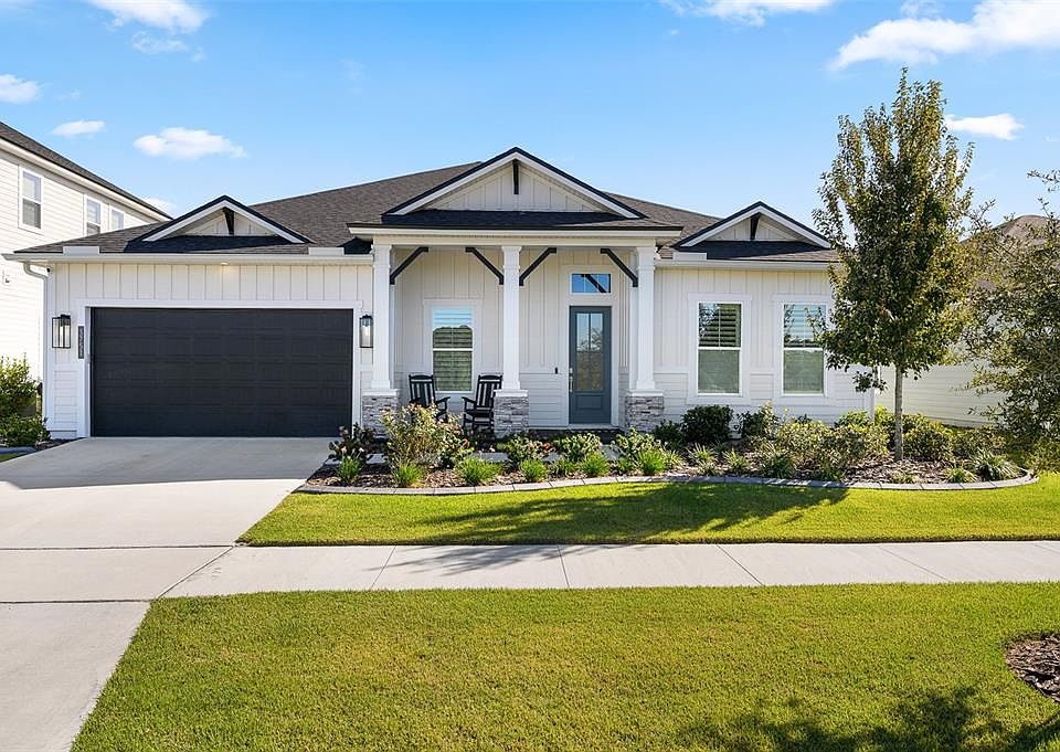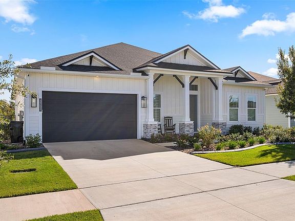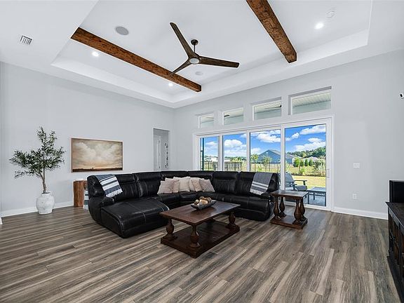 Step into luxury with this exceptional 4-bedroom, 3-bathroom residence in the desirable Oakmont community in Southwest Gainesville. Built in 2024, this home seamlessly blends modern craftsmanship, elegant finishes, and thoughtful design. Entering through the beautiful, custom four-panel rain glass front door you’re greeted by the bright office/study with custom barn doors and a built-in bookcase with a library ladder — the perfect spot for working from home or curling up with a good book. Across the hall, you’ll find two bedrooms and a full bath, with one bedroom featuring charming bookcase closet doors that add a touch of personality. Continuing down the main entry past the gallery with tray ceilings, the kitchen is a true showpiece feature of the home. Double stacked, upgraded deluxe kitchen cabinets, upgraded quartz countertops, upgraded undermount sink, a furniture-wrapped island with decorative X panels, drop-in gas range with hood, wall oven, and custom bricked walls create a space as functional as it is stunning. From here, the kitchen flows seamlessly into the dining room featuring a board and batten wrapped wall that continues into the spacious living room where tray ceilings with gorgeous hand-hewn wood beams and sweeping multi-panel sliding glass doors open to the infinity screened porch, revealing serene views of the fenced backyard that overlooks a gopher tortoise preserve conservation area behind the property. Adjacent to the living room, a third guest bedroom showcases elegant crown molding and is accompanied in the hall by a guest bathroom with upgraded pebble stone in the shower. Across the home, the owner’s suite is a true retreat, offering a tray ceiling, luxurious ensuite bath with upgraded pebble stone shower flooring, dual vanities, and a walk-in closet with built-in closet organizer. Practical elegance continues throughout the home with a mudroom featuring a charming built-in bench and storage, a large double-door pantry connecting to the laundry room, and a three-car tandem garage with ample space for storage or a workshop. Exquisite upgrades extend throughout the home, including plantation shutters, LED recessed lighting, wood-look tile flooring, seamless gutters, a whole-house water filtration system, concrete landscape curbing around the house, and additional insulation in the walls in some areas of the home. Oakmont residents enjoy resort-style amenities, including a clubhouse, fitness center, resort-style swimming pool with lap lanes, tennis courts, basketball court, multi-purpose activity field, and playground, all within a prime SW Gainesville location close to highly-rated schools, shopping, and dining.