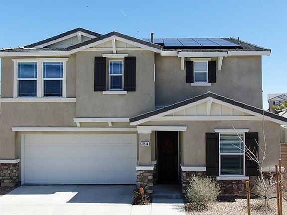 Come see this beautiful, practically new Anaverde Hills 2-story Cul De Sac home built in 2016, loaded with many upgrades. This West Palmdale home features an open space kitchen with Shaker Cabinets, leading to dining & living area with upgrades, such as granite counter tops, recess lights, Moen faucet, USB chargers, spacious pantry, stainless steel appliances, and a large island that can sit up to 4 people. This home has an Ideal layout with 1 downstairs bedroom & full guest bathroom, and 4 more bedrooms & 2 bathrooms upstairs. Master has bedroom with a spacious walk in closet. Master bathroom features a with double vanity white ceramic countertops, and separate standing shower & tub. Separate laundry room upstairs with side by side washer/dryer hookups with upgraded Cabinets. House has a 2 car attached garage, tankless water heater and Solar. Backyard features a built in play area perfect for families and Jacuzzi. Best of all, it's walking distance to Anaverde Elementary school. This home is a must see and will not last!!