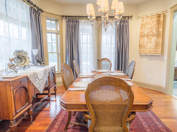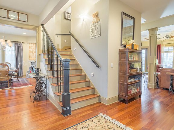 Driving down the lane to a peaceful setting, you will find a stunning custom built 2012 HOME with so much charm and character (6435 sq ft). Beautiful windows and doors with transoms over top, stone tile and hardwood floors, vast porches around front and rear--quality everywhere! Downstairs features Kitchen with island bar for gathering the family to eat, an island for the gas cook top, granite counter tops, two sided gas logs fire hearth nearby, breakfast nook and formal dining room. Under the staircase is a wine room. Master suite boasts French doors, and large walk-in closet. Jetted soaking tub, stone shower floor, double vanity in bath. Over sized garage has an extra room for crafts, tanning bed, work shop, your choice! Mudroom & laundry room inside house. Upstairs ----