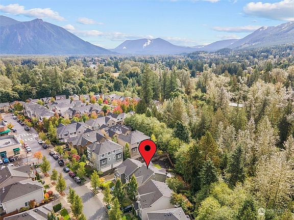 Gorgeous townhome in an incredible setting within minutes to shops, coffee, and restaurants. Snoqualmie is a hidden gem with easy access to Seattle yet close to hiking trails, mountain biking, and skiing. Tons of privacy with the only shared wall in the garage and home set facing a green space with a relaxing backyard filled w/ roses and fruit trees! Fully fenced for your furry friends too. Enjoy the forest views and sound of the birds with your morning coffee in your own private oasis. Low HOA dues only $35/month. Home features new AC, oak hardwood flooring, cozy gas fireplace, granite kitchen countertops, and primary bedroom suite w/ forest views! Experience living in a breathtaking area, yet close to amenities. Hurry home!