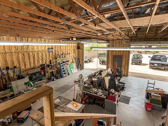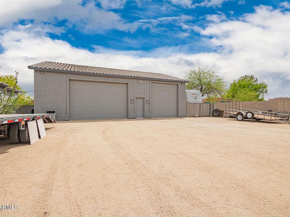This immaculate Cave Creek 4-bedroom home features a split floor plan, a spacious kitchen with granite countertops, island, stainless appliances and pantry, all open to a bright family room. Enjoy 10' flat ceilings, 18'' diagonal tile throughout (carpet in 3 bedrooms), and a primary suite with patio access and a spa-like bath with a two-person shower and large walk-in closet. spacious laundry room, 3-car garage, and a 2,000 sqft Air Conditioned detached workshop/garage with sprayed in insulation, office, RV parking, multiple amp circuits and more! Vacant land is for horse setup or casita potential. Solar power for both home and shop eliminates expensive electric bills! Amateur Radio Station (HAM) is negotiable by separate bill of sale. See Features List for more info located in doc. t