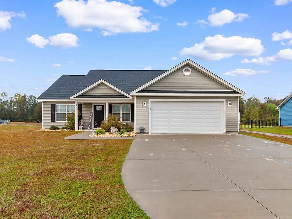 Just in time for the holidays this beauty has the place for entertaining inside and out!!! The home has an open concept with split bedrooms, 3 on one side and the primary on the other, leaving the middle for great meals and relaxation overlooking a covered back patio AND a finished out 24x30 detached building and 1.68 acres with NO HOA! The attached 2 car garage is finished with a mini split for heating and cooling. BUT WAIT! There's more!! Your RV has it's own gravel driveway from the road to the back of the home with a 50 AMP hookup, But the icing on the cake is that 24x30 2-bay detached shop that is completely finished out and built for the crowd to come cheer on their favorite teams with 5 televisions set up with internet for streaming, a fridge and a layout that screams fun!! This will exceed your expectations with granite counter tops, a walk in shower, tray and vaulted ceilings, and LVP in the main living areas. Midland Elementary and Aynor Middle and High school district. See this one today!