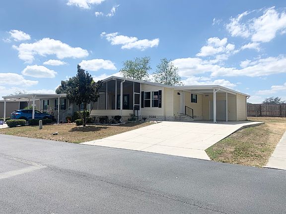 BRING ALL OFFERS!!! FULLY FURNISHED!!! GORGEOUS HOME REMODELED AND "LIKE NEW"!!! This 2005 mobile home is located in a 55+ golf course community with a lot rent of $709 starting Jan 2021. This lot rent includes the use of the amenities such as the use of the pool, shuffleboard, rec room, fitness center, hot tub, tennis, billiards and so much more! There is a restaurant on site and there is a nice golf course for an extra fee. Garbage pickup is only $12.88 per month along with a small water bill for around $15-$20 per month depending on usage. The community has storage for a boat or trailer if needed free of charge! Small pets are allowed! The park is located close to restaurants, medical facilities and even shopping! This home is located in a quiet section of the community and has nothing but a fence backed up to it! It has a NEW roof w/ warranty! The AC unit is working very efficiently and has been serviced regularly. The home has a huge driveway with carport with plenty of room to park up to 6 vehicles. Just off of the carport is a decent size patio which makes for a great place to place a table and chairs along with a BBQ grill! Attached to the carport you will find a small garage where you can store anything you wish along with your golf cart! If you are looking for a turn key home, this is the one!!! Step inside this AMAZING home and find an open floor plan! This home comes completely furnished and has been remodeled from top to bottom! All of the floors have been upgraded to laminate throughout with the exception of tile in the kitchen and bathrooms, the entire home has sheetrock walls with texture paint, the kitchen and bathrooms have all been upgraded, all light fixtures have been replaced and more! When you step into this home you will find the diningroom, kitchen and livingroom are all open to each other. The kitchen has a lovely island where you can sit and enjoy your breakfast along with a lovely tile backsplash and lots of custom cabinets for storage. Off of the livingroom you will find a screen room off the front of the home! Head down the wide hallway which has room for even a wheelchair and find the main bathroom with tub/shower combo along with the washer and dryer which is located in the closet! Both the 2nd bedroom and master bedroom are nice in size and the master bathroom is large with double vanities and a stand up shower! This home has lots of windows allowing lots of natural light into the home! This is a MUST SEE!!!! BRING ALL OFFERS!!!! COMPLETELY FURNISHED!!!!
