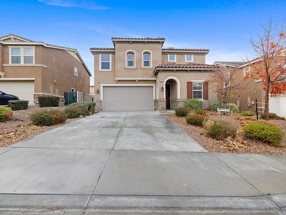 Discover this beautifully crafted cul-de-sac home in the heart of Palmdale! From the moment you arrive, the beautifully landscaped exterior sets the tone for the elegance within. Upon entry, you'll be welcomed by an inviting open floor plan featuring 9-foot ceilings, recessed lighting, and ample natural light. The spacious living area is perfect for relaxation and entertaining, seamlessly flowing into the dining space and kitchen. The chef's kitchen is a standout feature, boasting a large center island, generous counter space, stainless steel appliances, and an abundance of cabinet storage to meet all your needs. This home offers a main-floor bedroom and bathroom, providing convenience and versatility for family or guests. The primary suite upstairs serves as a private retreat, complete with an en-suite bathroom, dual sinks, a soaking tub, a separate shower, and a generously sized walk-in closet. The two additional bedrooms and bonus room upstairs offer comfort and flexibility. Make the generously sized backyard your own! It is perfect for outdoor activities, gardening, or simply enjoying the beautiful Palmdale weather. Additional features include energy-efficient solar panels and a two-car garage with extended driveway space. Situated in the desirable Anaverde neighborhood, this home offers convenient access to local shopping, dining, and is walking distance to Anaverde Park and Hills Elementary School!