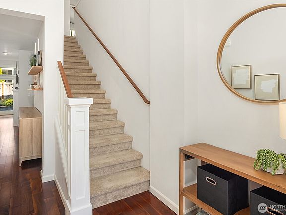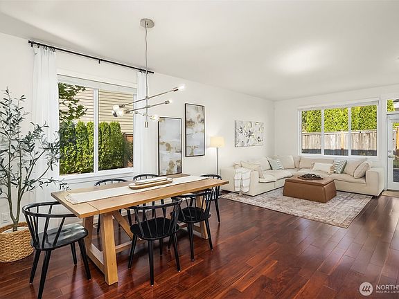 Step inside to soaring ceilings, warm hardwoods, and a cozy fireplace that set the tone for this inviting Snoqualmie Ridge retreat. The kitchen offers granite counters, stainless appliances, a gas cooktop, and rich cabinetry—ideal for everyday meals or casual entertaining. Upstairs, the primary suite includes two closets and a spa-like 5-piece bath, joined by two additional bedrooms, a full guest bath, and a versatile flex space. Exceptional woodworking details add timeless character. Outside, the turf backyard with lush landscaping provides a low-maintenance space for play, pets, or gatherings. With A/C, trails, parks, and the vibrant Ridge community at your doorstep, this home blends comfort, functionality, and adventure.
