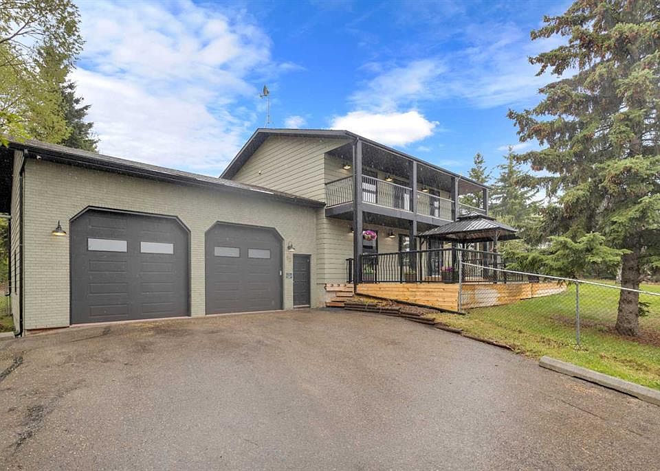 Experience the perfect blend of country tranquility and city convenience in the sought-after community of Springvale Heights, just minutes from Red Deer. This remarkable acreage captures sweeping views of the Rockies and the city, offering both peace and proximity. Built with architectural foresight and quality, the home features 9” energy-efficient walls and a long list of recent renovations. Step inside through the impressive front entryway, where soaring ceilings set the tone for the elegance throughout. Designed with both comfort and functionality in mind, the home offers three convenient entrances. The chef-inspired kitchen is the heart of the home—beautifully upgraded with granite countertops, modern stainless steel appliances (including a gas stove), redesigned cabinetry, crown molding, and a stylish backsplash. A welcoming dining area and formal living room, both with upgraded flooring, create the perfect space for gatherings. The cozy family room features a wood-burning fireplace and leads to a versatile multi-purpose area with extra storage, a renovated laundry room, a bathroom, and direct garage access. The main-floor primary suite is your private retreat, showcasing a spa-inspired ensuite with marble counters, a jacuzzi tub, and a walk-in closet. Upstairs, a second primary suite features balcony access—perfect for sunset views or watching fireworks—plus an elegant ensuite with a double quartz vanity and subway-tiled shower/tub combo. Two additional bedrooms and another full bathroom complete the upper level. The lower level is ideal for family fun or entertaining—perfect for a home theatre, games room, or teenage hangout. It also includes a large mechanical/storage room with two brand-new furnaces and a new hot water tank. Car enthusiasts will love the attached heated garage with radiant heat, 14-foot ceilings, new 10x10 overhead doors, and 220V wiring. Outside, enjoy the two expansive west-facing decks, mature landscaping, fruit trees, and a fully fenced yard—ideal for kids, pets, and entertaining. There’s ample space for trailers, campers, and extra parking. Located just three miles from Red Deer, this property offers pavement right to your door, access to school bus service, and community amenities like a playground and ball diamonds. With grocery and food delivery available, you truly can have the best of both worlds. This isn’t just a home—it’s a lifestyle. Come see why Springvale Heights is one of Central Alberta’s most desirable acreage communities.