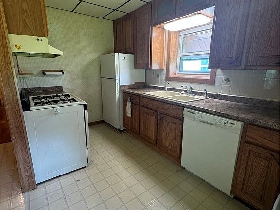 Charming 2-bedroom, 1-bath ranch home with versatile living spaces, ready for your personal touch! The inviting sunroom can easily be converted into a third bedroom or a bonus room to suit your needs. The basement offers additional convenience with a shower and toilet. Cozy up to the fireplace in the spacious living room. The property features an attached 1-car garage, two sheds in the backyard for extra storage, and a lovely front porch to enjoy your morning coffee. Laundry hookups are available both on the main floor and in the basement for your convenience. With a little TLC, this home could be your perfect haven. Don't miss out on this versatile and inviting opportunity!