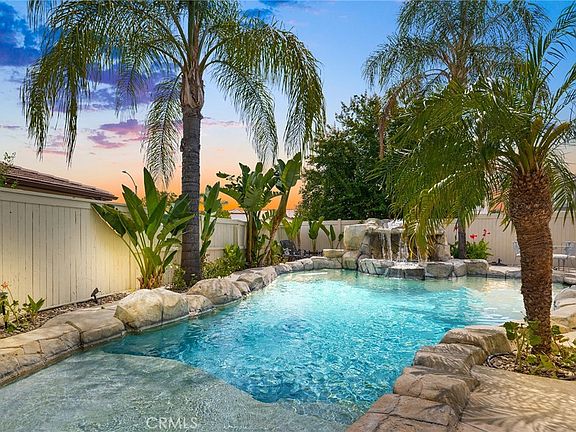 The Sellers are providing up to a $10,000 credit to the buyer towards closing costs. Owned Solar. Nestled in the highly sought-after Copper Canyon, this stunning cul-de-sac pool home blends comfortable elegance with views of the Santa Rosa Plateau—truly the best that Murrieta has to offer. Low Property taxes, No Hoa. The moment you arrive, you'll be captivated by the home's charming curb appeal. Step through the formal entryway, where soaring two-story ceilings showcase a grand staircase with a graceful wraparound banister. The expansive kitchen features a central island and a generous dining space, perfect for entertaining family and friends. Flowing seamlessly into the inviting family room, you'll find a cozy gas fireplace and a gorgeous built-in entertainment center. Complete with formal living and dining room featuring exquisite oversized crown molding and wainscoting. Downstairs, there is a full bedroom with an en-suite bathroom, a spacious laundry room, and a separate powder room for convenience. Upstairs, discover four additional bedrooms, a versatile loft with a large newly renovated and waterproofed deck, the office with beautiful built in cabinetry and two bathrooms. The luxurious primary suite features two walk-in closets and a spa-like bathroom with a soaking tub, upgraded walk-in shower, and dual vanities. Step outside to the beautifully appointed backyard, where you can enjoy panoramic mountain and canyon views from multiple seating areas, a built-in BBQ, fire pit, and direct access to scenic walking trails. The sparkling pool with a waterfall spa promises endless family fun. The pool heater was recently installed. The pool pump and vacuum system have been recently replaced. Additional highlights include beautiful built in cabinetry in the office, a tankless water heater, plantation shutters downstairs and thoughtfully designed oversized crown molding, wainscoting and tall baseboards throughout the home. Ideally situated near award-winning schools, picturesque hiking and biking trails, and Historic Downtown Murrieta, this home is a true gem.