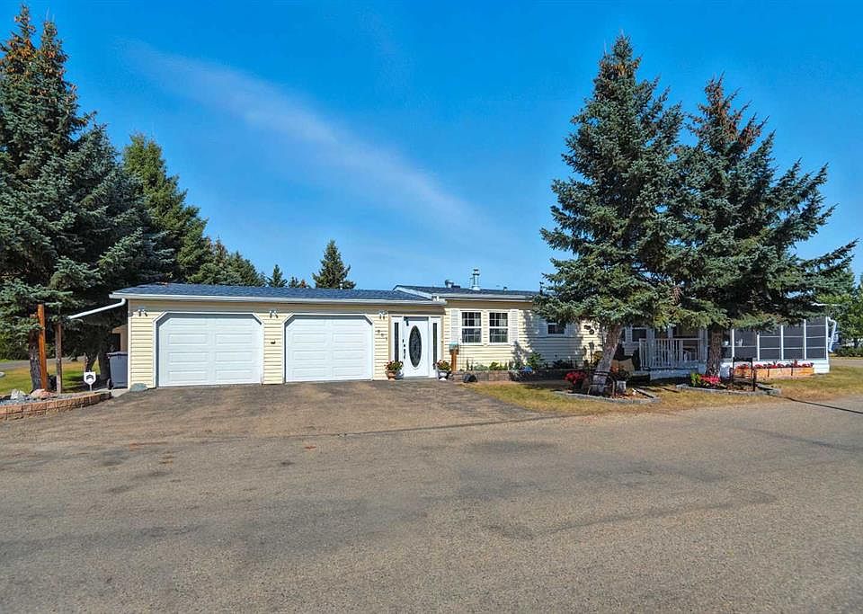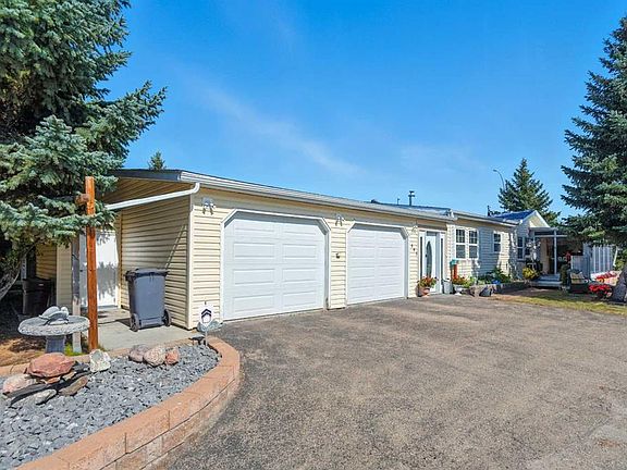 Welcome to the quiet, welcoming neighbourhood of Waskasoo Estates. This inviting modular home offers just under 1,500 sq ft, highlighted by a sunny front sunroom perfect for slow summer evenings or morning coffee. Thoughtful updates over the years include the kitchen, flooring, siding with exterior insulation, windows,light fixtures, baseboards, and more, so you can settle in with confidence. Inside, the living room feels bright and private thanks to specialty windows that let the natural light pour in while keeping your space secluded. The kitchen and dining area flow seamlessly, and a cozy nook at the back makes an ideal reading corner or breakfast spot. With three bedrooms, the spacious primary easily fits a king size bed and features a wonderful ensuite your own little retreat at the end of the day. A large double attached garage offers true two car parking plus extra storage for your gear. Residents also enjoy access to a community hall that families can rent for gatherings and celebrations. Pride of ownership shows throughout this is a peaceful place to call home.