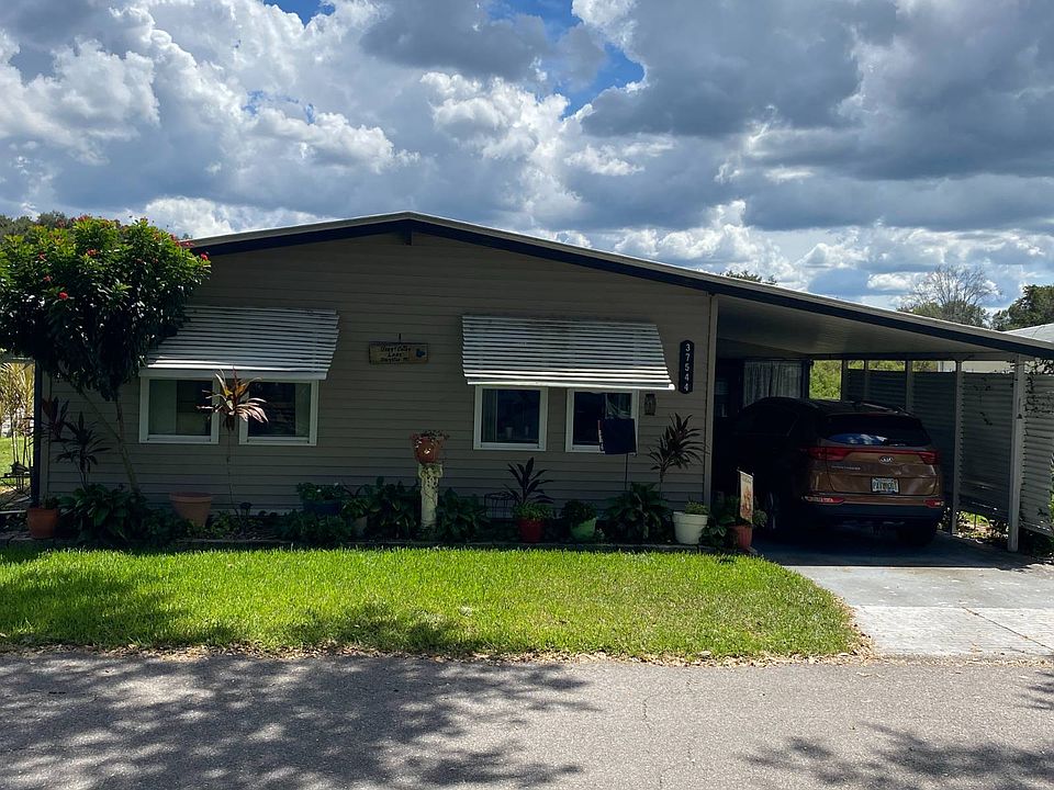This 2 bedroom/2 bath home has a 10'x22' enclosed Florida room which makes it a total of 1084' square feet. ALSO, you won't be disappointed by an additional 2 enclosed porches. The first porch is 12'x26' with an 8'x9' attached shed. The rear porch is a 10'x27' porch with a lovely view of the pond. The AC has been maintained and their is also a rubber roof that encloses the home, the carport and the porches. Check out the pictures with all the room sizes. Make your appointment today! Tropical Acre Estates of Zephyrhills is a conveniently located, affordable, pet friendly, and active 55+ community. Residents of Tropical Acre Estates enjoy a fabulous clubhouse, pool, shuffleboard, horseshoes, and more. Activities include morning coffee, dinners, dancing, art club, cards and cribbage, quilting group, exercise, pool exercise, bingo, bible study, chorus, craft group, karaoke, you name it! A short drive from Tropical Acre Estates: shopping centers, restaurants, houses of worship, medical facilities, museums, festivals, and skydiving. A short drive will bring you to the metro areas of Tampa-St. Pete and Orlando, including cultural attractions, international airports, cruise terminals, major league sports teams, spring training baseball, world renowned beaches- Central Florida has it all! Consider joining the happy and satisfied residents of Tropical Acre Estates, where you will immediately feel welcome!