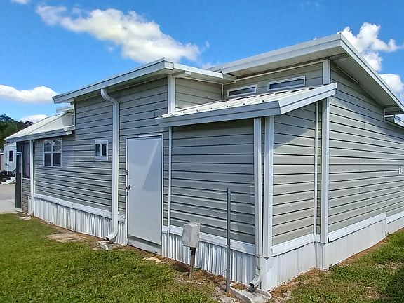 PRICE REDUCED!! Soak in the gorgeous Florida weather from your screened-in front porch, which leads into a charming sitting area and flows effortlessly into the living room, dining area, and kitchen. The updated kitchen boasts brand-new cabinets and countertops, while the renovated bathroom features a convenient shower insert with built-in seating. The generously sized bedroom fits a queen-size bed and includes ample storage with a full wall of closets and built-in drawers. There is a second room that can be used as a den, second bedroom or office area. A spacious utility room offers even more storage and comes equipped with a stackable washer and dryer. This home is a must-see located in Settler's Rest RV Resort, a 55+ active community seller is VERY MOTIVATED! schedule your showing today!