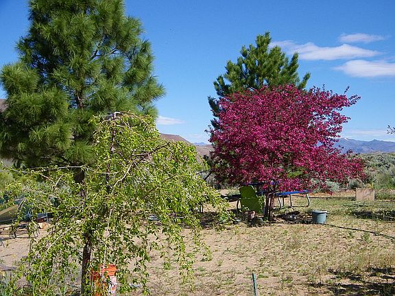 The cabin in the pines. Over 100 mature pine trees on 74 acres, fencing and cross fencing, ideal for animals, RV spot w/50 Amp plug in and water, pumphouse with tool storage and negotiable sheds. Great view of the Sierras to the south and Tule Peek to the north. Quiet, secluded and beautiful.