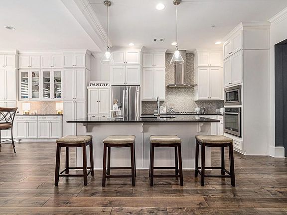 Soaring ceilingsOpen main floorplanRich dark hardwood floorsStainless steel appliancesBreakfast nookBright white kitchenCustom tile backsplash