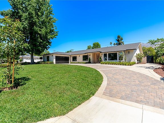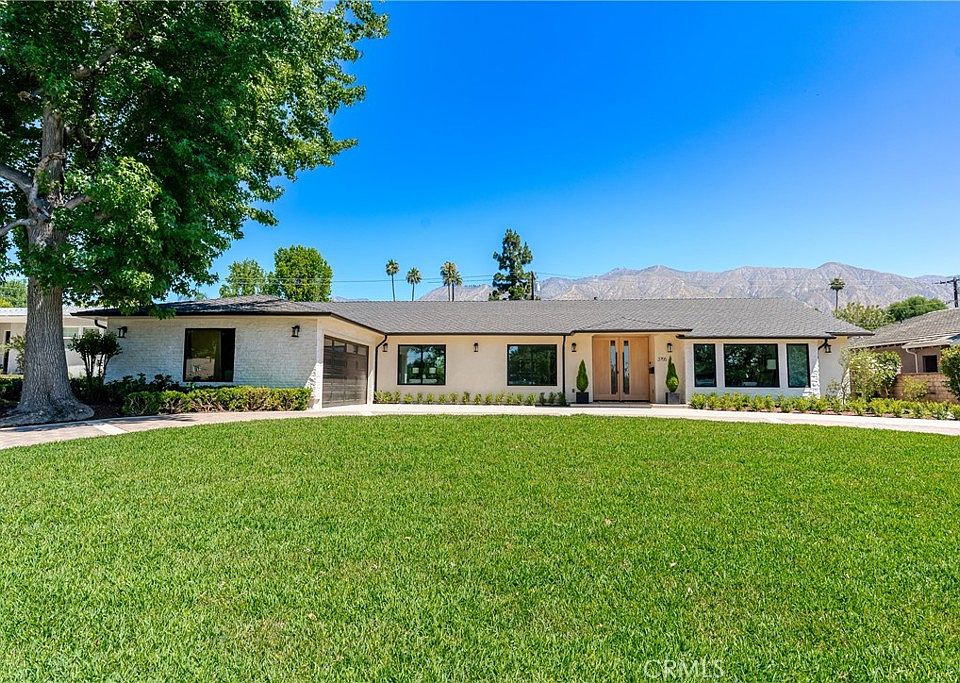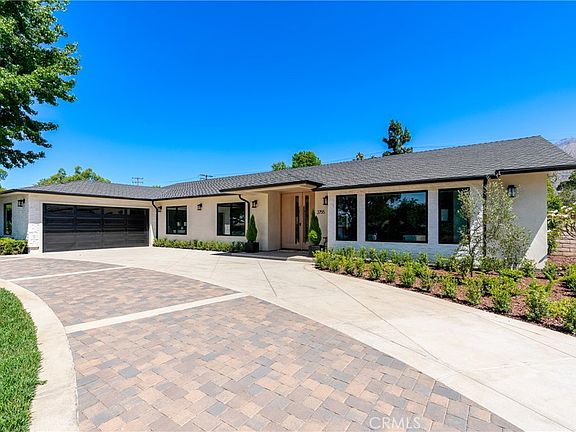 Welcome to this beautifully renovated single-level modern ranch home, ideally located on a spacious, flat lot in the highly sought-after Lower Hastings Ranch neighborhood of Pasadena. The main residence spans approximately 3,644 square feet, offering 4 generously sized bedrooms and 4 stylishly appointed bathrooms. A detached 737 square foot ADU provides excellent flexibility for extended family, guests, or rental use. Inside, a light-filled, open floor plan unfolds with a dramatic great room, formal dining area, and a quiet home office, all under soaring ceilings that enhance the sense of space. The gourmet kitchen features top-of-the-line designer appliances, custom fixtures, and a hidden walk-in pantry that adds both functionality and charm. Thoughtful details include new wide-plank hardwood floors, custom cabinetry and closets, and dual wine and beverage refrigerators. Two expansive covered patios extend the living space outdoors—perfect for entertaining or relaxing on warm summer days. The backyard is finished with nearly 3,000 square feet of low-maintenance artificial turf, creating a lush and inviting retreat. Curb appeal is elevated by a new driveway and a striking double 42-inch entry door, completing the home’s modern elegance.