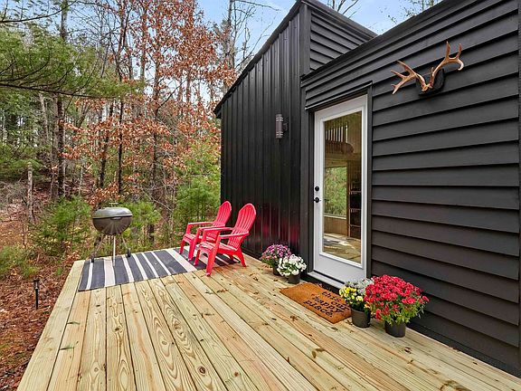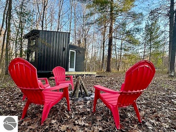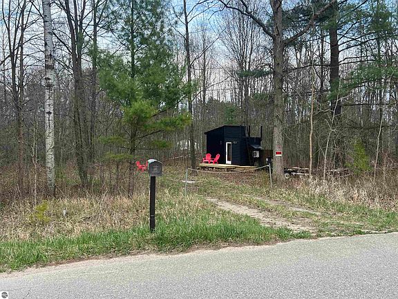 Quiet wooded retreat off paved road with a charming Scandinavian inspired tiny house on wheels! This 0.32 acre parcel has easy access in & out and is conveniently located minutes to Beaverton or Gladwin. Located in a tranquil rural setting, this custom built cabin was designed to blend seamlessly with its natural surroundings but with modern comforts focusing on off-grid sustainability. Thoughtfully crafted with quality, material materials and space-saving amenities, this tiny home spares no detail. Inside you’ll find white washed knotty pine tongue & groove walls and ceiling, mixed hardwood floors and walnut countertops complemented by curly maple stairs. Modern comforts include a Senville mini split for efficient heating and cooling, a Frigidaire mini fridge, and Emporium built in 2 burner stove and a Nature’s Head composting commode, offering both convenience and Eco-friendliness. The exterior features double steel and painted cedar, designed to blend into the landscape. Step outside to a treated deck perfect for enjoying the serene surroundings or go up the ladder to the star gazing rooftop. A 100 amp electrical panel, 50 amp RV cord, outdoor shower unit and the flexibility to remain movable, this tiny house is designed for maximum adaptability. Perfectly blending rustic charm with modern amenities, this tiny house is a rare find. Lastly the home comes furnished (brand new sofa, queen bed, linens, cookware, dishes, coffee maker and more), just bring a generator or hook up to the electric at the street!