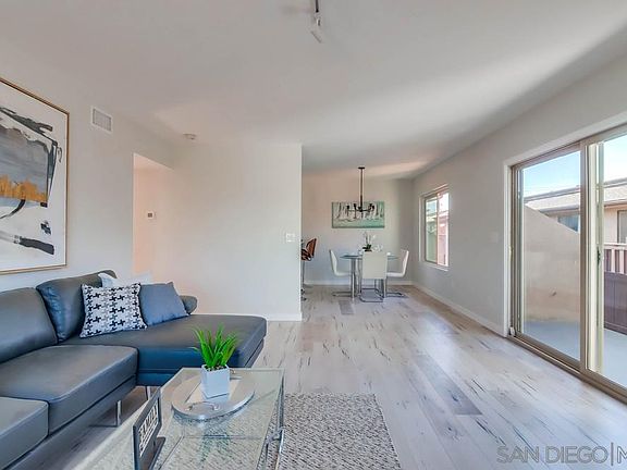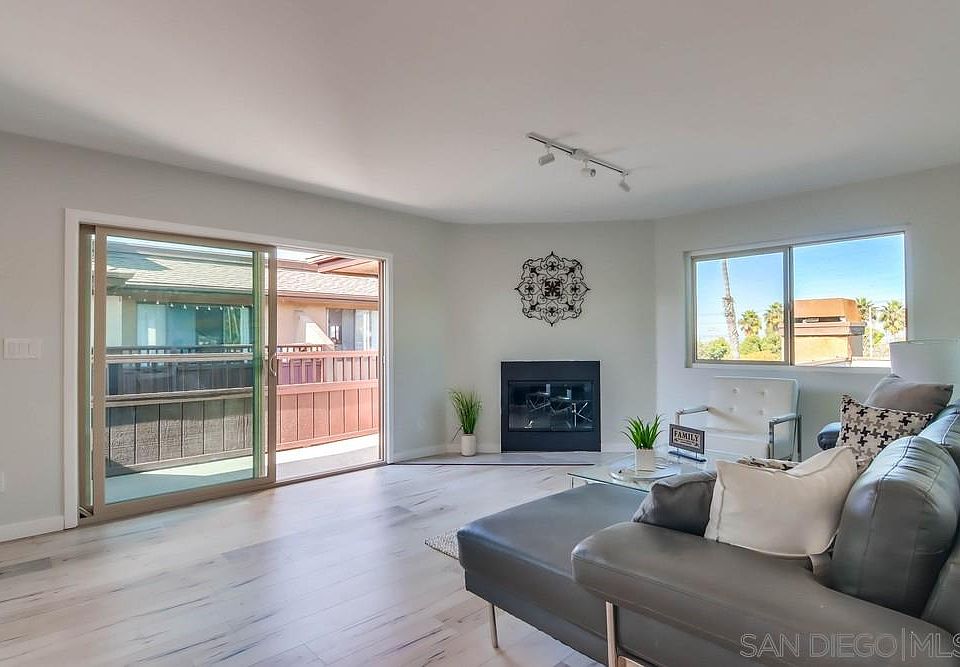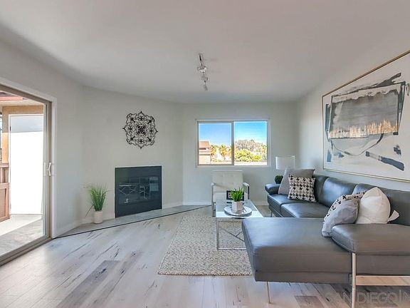 Stunning, new "walls-in" designer remodel, upper end-unit condo w/ 2car garage, private laundry, FPL! You'll love: new Shaker kitchen w/ farmhouse sink, natural quartzite counters, herringbone backsplash, stainless steel appliances. New baths: walnut shaker vanities, quartzite counters. Also: sunny oversize MBR w/ 2 big windows, simulated driftwood floors, rooftop views, balcony w/laundry. More NEW: dual-pane windows, heater+ducting, insulation. Walk to coffee & Stumps Mkt, bike to O.B. & Liberty Station.