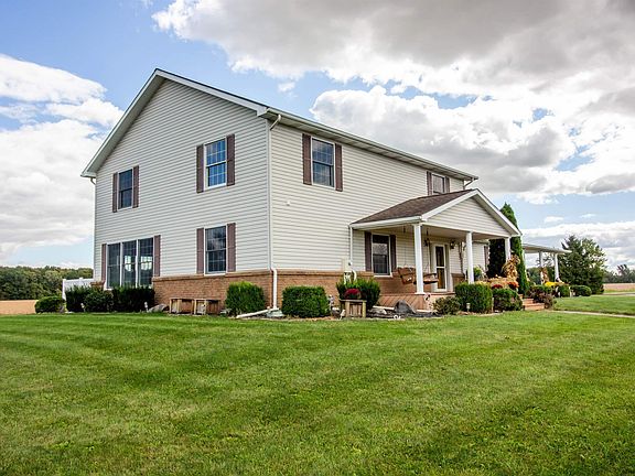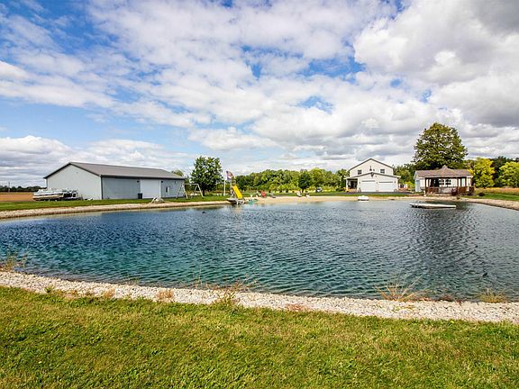 Looking for a country home, that is conveniently located with modern day amenities? This home checks all the boxes. This spacious 2 story home, situated on 2 acres, overlooks a beautiful pond with a large sandy beach and gazebo for all your outdoor entertainment. Step inside the home and you'll find a spacious foyer and plenty of room for social gatherings. The eat in kitchen has custom cabinets and a beautiful wall of windows to take in those country views. The main floor also boasts a large family room with custom built-ins and a fireplace for those cold Indiana winter nights. There is an office and main floor laundry and guest bath. The owners suite on the main level includes a custom walk-in tiled shower along with a jetted tub. Upstairs you will find oversized bedrooms, and a rec room along with another large bonus room and full bath. Be sure to check out the pole building that is equipped with built in air compressors and a walk up loft for easy storage. For more outdoor storage there is an additional 2 car detached garage. This home is energy efficient with geothermal heating and cooling. The deck features a hot tub for you to unwind and relax after a hard day. Make sure you don't miss out on this beautiful country home.