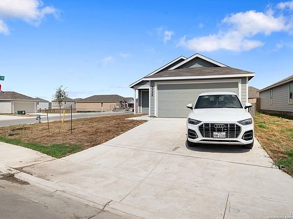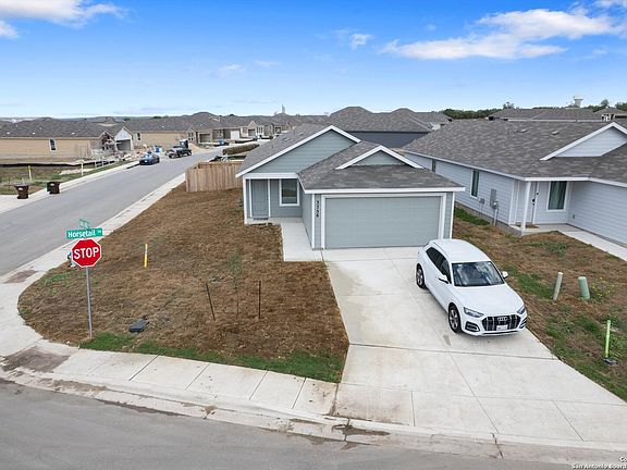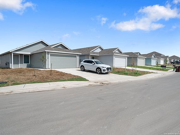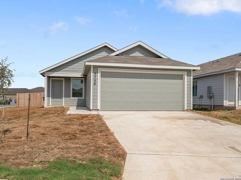 Inviting open-concept floor plan property in Steelwood Trails! This 1402 Sq Ft home, built in 2024, offers modern comfort and thoughtful upgrades throughout. The property comes complete with a refrigerator, washer, and dryer for added convenience. Enjoy new lighting in all bedrooms, a freshly epoxied garage floor with shelving, and a sprinkler system to keep your lawn lush. Additional features include flood lighting with motion detection, a newly installed outdoor water faucet, and extra tiles extending the exterior walkway. Located close to shopping, dining, and the charm of historic Gruene-this home combine style, functionality, and a prime location.