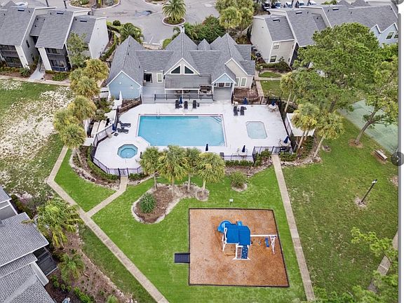 Condo is a bottom floor corner unit so there's no neighbors on 1 side & it has a screened patio to sit & enjoy the views & you can exit from it as well. Pool is close by but not too close where you hear noise. It's very peaceful & quiet.