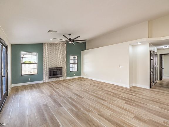 Welcome home to this beautifully remodeled 3 bedroom, single-story home in cul-de-sac with spacious backyard & covered patio! Located less than 10 minutes from the entertainment, shopping, restaurants & casinos of the world famous Las Vegas Strip! Home has stunning interior finishes, floor to ceiling tiled fire place, painted accent walls, vaulted ceilings, modern lighting, ceiling fans, laminate wood flooring, and plush carpet throughout! Enjoy the customary kitchen with garden view, tiled backsplash, white shaker cabinets, recessed lighting, stainless steel appliances and small breakfast bar with sitting area. Bathrooms include new modern dual vanities with black framed mirrors & hardware, custom lighting, custom tiled showers with rainfall shower head and built in niche.