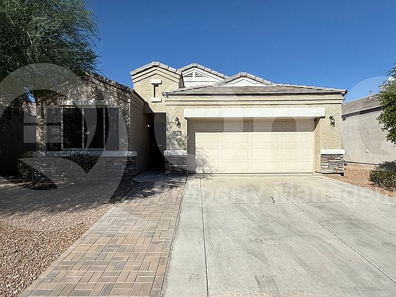 Available Now! 1,712 SQ FT! This 4 bedroom, 2 bath home in Buckeye's Tartesso Unit 1 Amd community features a desirable single-story floor plan with neutral flooring throughout. The kitchen comes equipped with all major appliances including a refrigerator, oven, microwave, dishwasher, washer, and dryer, plus a pantry and breakfast bar for added convenience. The spacious great room design offers an open flow for living and entertaining. The primary suite includes a walk-in closet, while three additional bedrooms provide ample space for family or guests. A dedicated laundry room, ceiling fans, and blinds add comfort throughout. The home also offers a 2-car garage with opener, a covered patio, and a low-maintenance yard. Located in the popular Tartesso neighborhood, residents enjoy access to nearby parks, schools, dining, and entertainment.