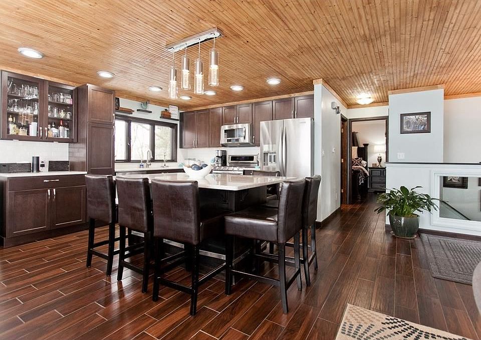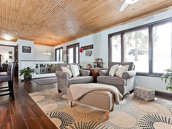 Gorgeous remodeled home! Gutted to the studs on the main floor, some of the upgrades include, new plumbing, wiring, beautiful tile floors throughout main, tongue and groove pine ceiling, new trim & lighting, soft close cherry cabinets, quart counter tops, solid 6 panel doors, new master bath including tiled shower. Walkout lower level features large rec room, gas fireplace, 2nd bedroom, & 3rd non conforming bedroom/office. Tons of landscaping, just under .5 acre lot, with a walking trail to the res! Road association fee is $450/year.