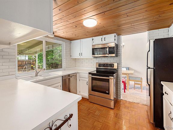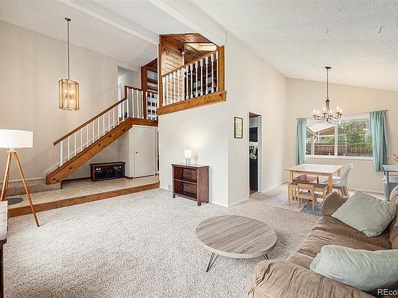 Welcome to this amazing mid century modern home with four bedrooms, three bathrooms, vaulted ceilings and upstairs loft in Cherry Creek School District! As you walk up to the home you have a front patio entryway with room for seating and gorgeous natural plantings. Entering the foyer, you are greeted with a formal living room, high vaulted ceilings and picturesque view of the loft and staircase. The sunny eat-in kitchen is open to the family room with wood-burning fireplace and views of the lush backyard. Outside side is a large covered patio, perfect for dining al-fresco and enjoying our perfect Colorado climate! Rounding out the main floor is a separate dining room, main floor bedroom and ¾ bathroom. The main floor bedroom is currently used as an office but would also be a great guest suite! Upstairs is a loft overlooking the main floor with a skylight and built-in shelving, followed by the primary bedroom with en-suite bathroom, two additional bedrooms, and a full bathroom. The two car attached garage is drywalled and there are sprinklers in the front and back yards. This home is a great opportunity at an extremely competitive price with easy access to major roadways, shopping, schools, parks and libraries. Schedule your showing today!