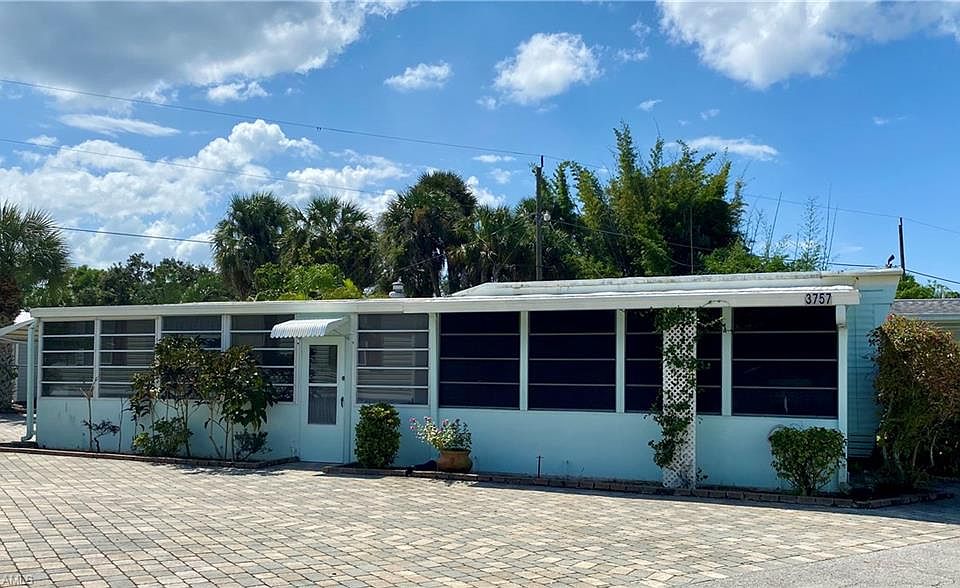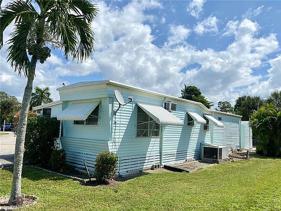 Welcome to the simple life...Simply put it starts with an affordable 55+ Co-Op community, with a low monthly HOA fee, the beach is just 2 miles west of the park, I-75 is 4 miles east of the park, best of all its located in Bonita Springs Florida, 15 minutes north of Naples. This adorable home has 2 bedrooms and 1 bath & sits on one of the largest lots in the park, which is mostly paved. The rear of the property has multiple paver-framed plant beds with fruit-bearing trees and an 8x10 shed. The extra-large lanai spans almost the length of the home with 450 square feet of extra living/dining/relaxing space, the home itself is 460 square feet. The monthly HOA fee of $115 includes the use of the large heated pool, a clubhouse, a community room with pool table & exercise equipment, a library, a large DVD movie selection, 4 horseshoe pits, and 2 shuffleboard courts. Best of all, the fee also includes water, sewer, and central trash collection. The home is in the process of opening for the season, interior pictures to follow. Neighborhood boat ramp with Gulf Access via Imperial River. Come tour the home & the park, short notice showings are encouraged, as the agent lives in the park.
