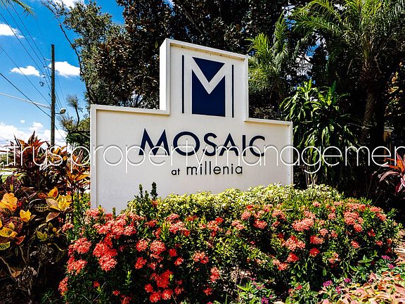 Brand new LVP and laminate flooring throughout in this two bedroom, 2 bath condo located in Mosaic at Millenia. First Floor with a large lanai, nice living space and a full size washer and dryer. Private storage room included. Located in a gated community with wonderful amenities, including community pools, fitness center, tennis court, playground, and more. All the shopping and restaurants Millenia has to offer are right around the corner. Close to I-4, and the attractions.. You will love living here. Call now to make an appointment. Water is included in the rent. Please allow 7 days for HOA approval.