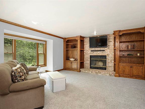 Situated on a 1.78 +/- acres this stunning brick faced home is tucked away at the end of a cul-de-sac. This picture perfect estate provides the ultimate retreat from the hustle and bustle of busy life. Step inside to be greeted by a soaring foyer with hardwood floors and a split staircase. Adjacent to the foyer is the formal dining with large windows, an office with a beautiful built-in workstation, and separate half bath. Tucked behind the foyer is the combination kitchen, living room, and dining area perfect for entertaining or daily living. The kitchen boasts loads of cabinetry, tile backsplash, Corian counters, stainless steel appliances, and a center island. Patio doors frame the dinette and lead to the back deck overlooking the mature tree lot. A brick wood burning fireplace anchors the living room and is flanked with built-in cabinetry. The living room is large enough for oversized furnishings. An open staircase from the main living area leads to the upper level with a master, two secondary bedrooms, as well as a second full bath. The oversized master suite is loaded with amenities; California walk-in closet, Jacuzzi tub, and separate shower. The two remaining bedrooms are generously sized and share the second full bath. Need more space? The lower level has been finished with a custom built-in entertaining bar, as well as an expansive work out room. Additional features include: 2.5 car garage with double deep 3rd bay, first floor laundry, 6 panel doors, crown molding, city sewer and water, and much more! Escape the confines of the house and relax outdoors on the back deck nestled among the trees.