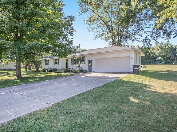3 bedroom ranch on 1.86 acres with 24 x 28 pole barn in Byron Center! Central air, central vacuum, woodburner in living room, hardwood floors, and huge backyard on quiet street. Location is close to Ironwood Golf Course and M-6. Barn has concrete floor, 220 electric, and woodburner. There are sliders to deck off family room. Seller reserves hanging lamps in dining area and in family room/formal dining room.